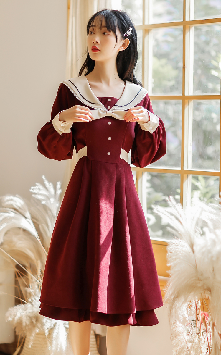 Kawaii Fashion Punk Dress Velvet Cherry Blossom Dream Dress