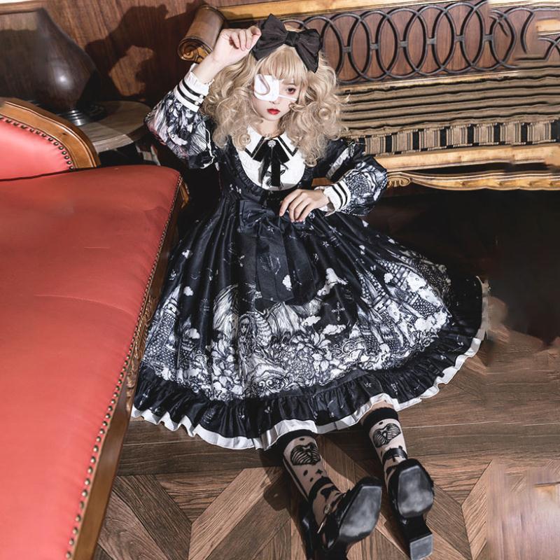 Kawaii Fashion Goth Dress Whimsical Dreamscape Anime Swing Dress