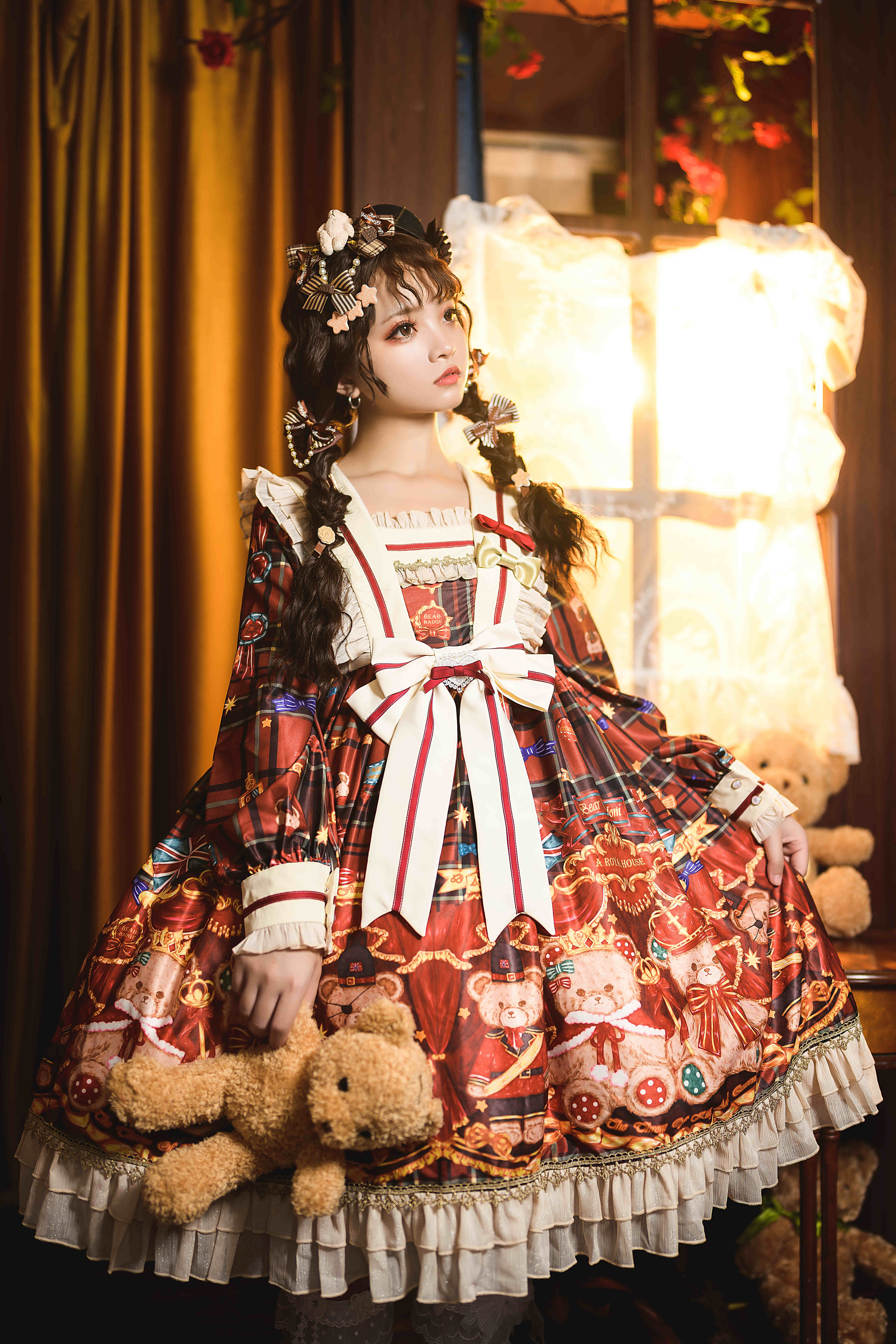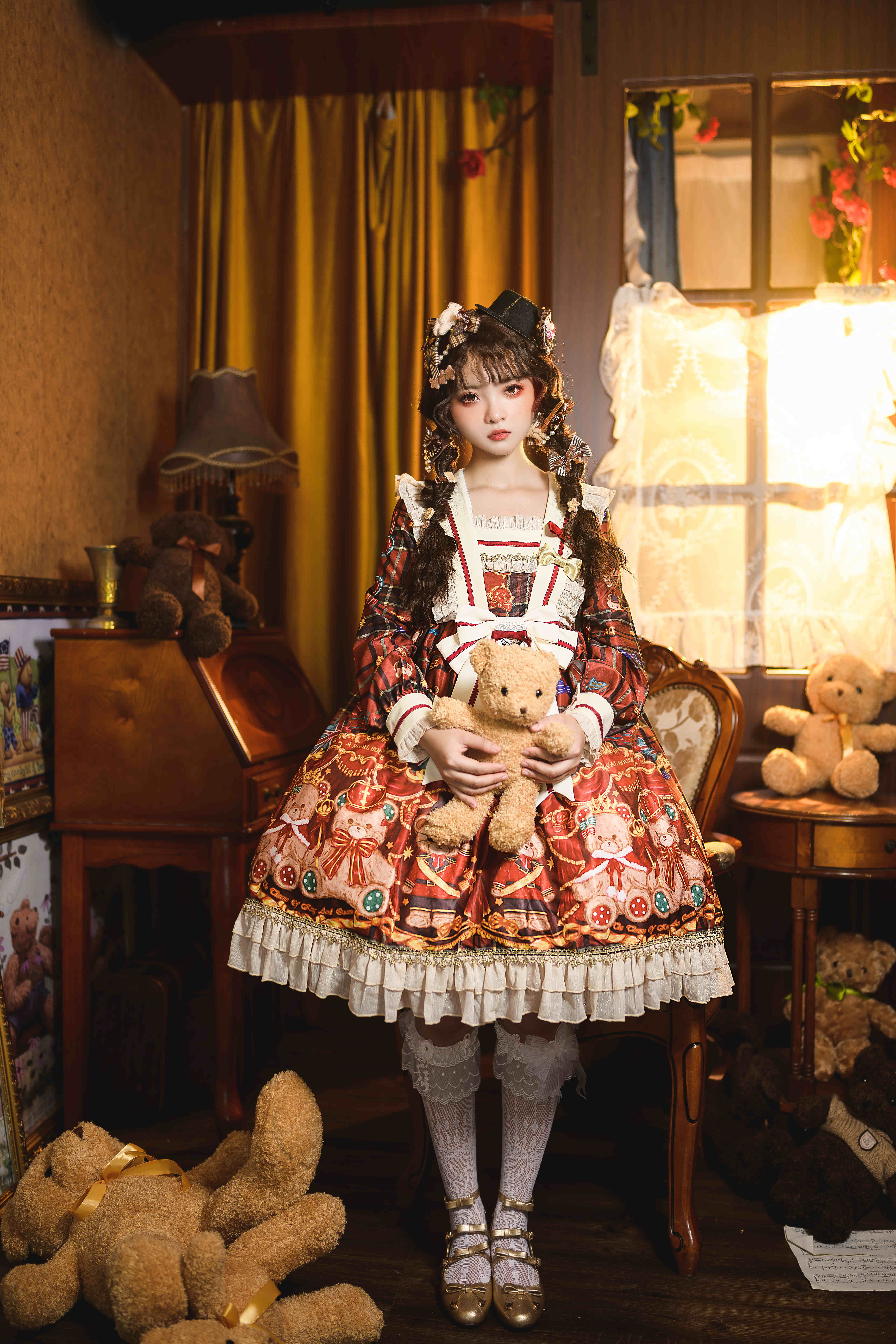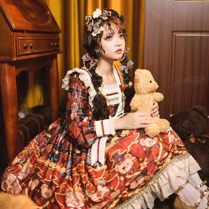 Crimson Whispers Bubble Sleeve Enchantment Dress