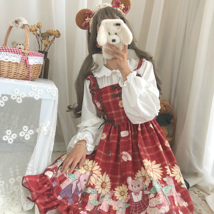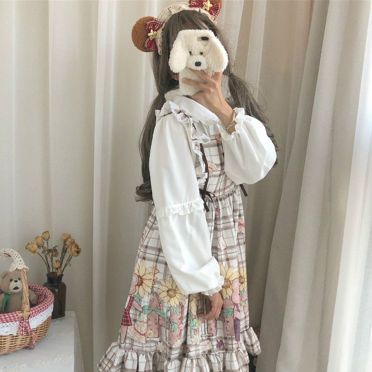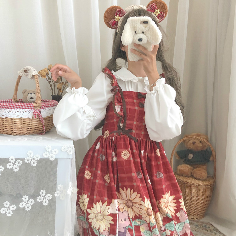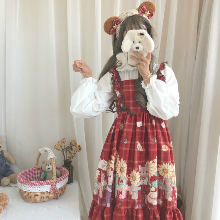 Color classification: 9717 white shirt, wine red JSK sling, generation color JSK sling, 9717 white shirt and velvet, 9717 white shirt and velvet + generation color JSK sling 9717 White Shirt + Generative Color JSK Sling Combination